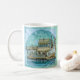 Wharf Scene mug by ArtMuvz Illustration. Matching Wharf tshirt, Beach apparel, gifts for fisherman, sailors. To personalize add your name or add text instead. Customize this Wharf mug to make it uniquely yours or to give as a personalized gift