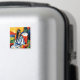 A woman in a white and blue dress sits on an orange chair within a landscape of vibrant hills and a bright sun, wondering 'What's that smell!'