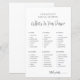 What’s In Your Purse? Bridal Shower Game. This playful activity invites guests to search through their purses and check off items from a fun point-based list, making it an easy and entertaining icebreaker for any bridal shower. The design is clean and minimalist, with no flowers or themed graphics, creating a versatile look that works for any style of celebration. The title and headings use a mix of elegant handwritten script and simple serif fonts, keeping the layout stylish and easy to read. Guests can mark off common items, rare finds, and quirky extras to tally their final score. The lists can be customized to include any items you like. All text, fonts, and layout can be edited to match your event. A simple, fun game that adds a lighthearted touch to celebrating the bride-to-be without limiting the design to a specific theme.