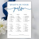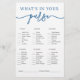 Ett spel för roligt och interaktiv möhippa som får alla att gräva igenom sina väskor! Det här är i din pjäs? Utskrivbara spel har en modern "något blått" design med nivåindelade poängvärden som behållor konkurrensen livligt. Gästerna kontrollerar vilka artiklar de har i sin handväska och justerar sina poäng. Den med de högsta totala vinsterna! Ett perfekt som tillägg till temat Klassblått möhippa.