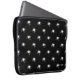 Svarta laptop sleeve med en vit spindel mönster. Du kan ändra bakgrunden till färg, och storlekt och vinkelt till mönster. Vår logotyp är i hörnet - flytta den eller ta bort den om du vill.