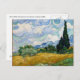 Vete Fält med Cypresses av Vincent van Gogh Postcard Van Gogh ansåg att detta sol-dränkta landskap var ett av hans "bästa" sommarkanvaser och upprepade sammansättningen tre gånger: i en borrpenna teckning (Van Gogh Museum, Amsterdam) och i två oljemålningar senare som fallit (nationalgalleriet, London och privat insamling).