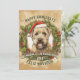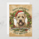 Träd in i en nostalgisk julstämning med vårt unika julkort för Wheaten Terrier! Med inspiration från svunna tider visar denna vintage-inspirerade design en förtjusande Wheaten som bär en jolly Santamössa, inklämd i en festlig krans. Men det som verkligen får kortet att sticka ut är dess underbara ordlek som säkert kommer att tilltala alla hundentusiaster: "Glada Howlidays, Season's Wheatings och Feliz Navidog."