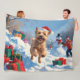 Wheaten Terrier Runin i Snö med julklapp Fleecefilt