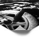 En hög av kasserade cyklar och skotrar i denna vita och vita stadsmiljö.