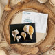 My photography of collected seashells postcard, with option to personalize with a message. Lightning whelks (two on left) and Pear whelks are compared in this photo. The apertures (shell openings) are showing, and it is the big difference between these similar mollusks. One makes its shell with a left-handed opening, and the other has a more common opening on the right side. The shells were collected from Florida waterways and were found empty. Use this interesting postcard to reach out to friends, for business, or any communication. It is also collectable as a photo card.
