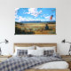 The stylized brushwork evokes the texture of oil-on-canvas landscapes, blending influences from both Impressionism and the Hudson River School. Rolling clouds echo the contours of the land below, and soft lavender tones in the distant peaks speak of coming dusk—or perhaps a dawning hope.