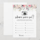 Gör dig redo för att ge dig ut på en fantastisk resa nerför minnesgatan med vårt Where Were We Bröllopslek Kort! Det här spelet är roligt och perfekt för din bröllopsfest, med antydningar till rosaton, rosa och blomsterprakt för att skapa scenen för en oförglömlig kväll.