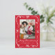 Skicka festiv jubel med det här Whimsical Hand-Drawn Bows Red Jul Photo Postcard. Bilden är centrerad i en fetstil röd bakgrund, accentuerad med ett lekfullt vitt band och med en langande ram. "God jul" visas i handskript med visuell skrift, där familjen namn och året visas under. Den motsatta sidan ger utrymme för din returadress- och helgdag-signal, skapar detta som ett smart och glatt sätt att sprida julhälsningar.