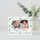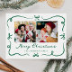 Skicka festive hälsning med det här visuella julfotovykortet som innehåller två kvadratiska bilder som ramats in av handritade gröntar och band. En vit bakgrund behållor designen färsk och modern, medan "God jul" visas i ett handskript för grönt ovanför din familj namn för att samordna serif-bokstäver. På baksidan finns utrymme för din returadress och ett budskap om anpassningsbarnas helgdag. skapar det vara ett glatt vykortsval för att sprida glädje till familj och vänner denna julsäsong.