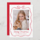 Whimiscal Hand Drawn Red Bow Meowy Julfoto Julkort