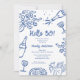 Whimiscal Blue Hand plockade 30års födelsedag Party bjudan Bold and Blue hand plockade födelsedagsfest inbjudan med blommor, champagne flaska, glasögon och cherub. All text är redigerbar och skapar den här mallen som är mycket mångsidig och som kan användas i alla åldrar.