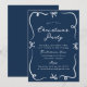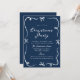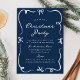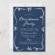 Ge helgdag firande en elegans med julfestinbjudan som innehåller handritade bogar och band på djup marinbakgrund. "Jul Party" visas i ett festivt, handskrivet, vitt skript, parat med klassisk serif-bokstav för din händelseinformation. Denna inbjudan är sofistikerad men glad. Den är ett mångsidigt val för party, helgdag eller företagssammankomster.