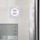 En födelsedagsmagnet med en mönster med en roligt sommarvisare. Rosa flamingos och ananas sätts på ett ljusblått strippat mönster med löv och hjärta överallt.