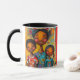 Whimsical Moderskap Mugg with Inspirational Quote - Anpassade Family Art Description: Fira glädjen moderskap med detta visklika mugg, med en färgstark illustration av ett levande mor och hennes barn i en levande trädgårdsmiljö. Konsten fångar en hjärtslitande scen med mor och hennes två barn, omgivna av en livlig mängd blommor i ljusa nyanser av orange, rosa, lila, gult och grönt. Mor har ett milt leende och bär en mörk blått klänning med blommönster och färgat polka dots. Barnen, med serenuttryck, är klädda i en lila klänning med orange blommor och en blå klänning med vismisk design. Bakgrunden är en rik teal blue, fylld med snurrande mönster och blommor som tillför en aning magi och lekhet. Baksidan av mugg har ett upplyftande budskap: "Mina barn är en källa till glädje och inspiration, och jag är tacksam för de vackra ögonblick vi !" Mugg kan vara en personlig med ditt namn eller ett speciellt budskap, skapar det en tankfull gåva till mor eller någon som vårdar familjeögonblick. Finns i storlekarna 11 oz och 15 oz. Perfekt för hem, kontor eller som en meningsfull gåva till mor och familjer. Ta med dig en aning färg och inspiration till din dag med anpassadet moderskap mugg, perfekt för att fira det speciella bandet mellan ett mor och hennes barn.