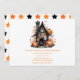 Inbjudan gäster till en magisk och pooky Halloween-bash med den här fantastiska inbjudan. Det har ett charmigt hemsökt hus omgivet av vibrerande pumpor och höst löv, perfekt för ett festligt och vänligt Halloween firande.
