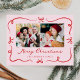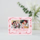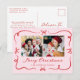 Skicka vackra semesterhälsningar med det här visuella vykortet för julfoto med två kvadratiska foton som är framtagna med handritade röda trålar och band. En rosa-bakgrund ger en mjuk, festlig beröring, medan "God jul" visas i ett mycket rött skript ovanför din familj namn i klassisk serif-skrift. Ta med helgdag returadress och personlig på baksidan. Ett charmerande vykort, stil, ger värme och glädje åt din julpost.
