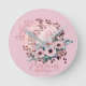 Whimsical Autumnal Rosa Pumpkin Blommigt Round Clock.