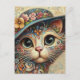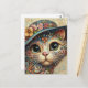 Whimsic Blommigt Abstrakt Kattunge med Hat Vykort