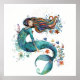 Whimsical akvarell sjöjungfru konsttryck poster