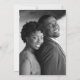 Det här unika och moderna svarta och vita bröllop spara datum-kortet har ett fetstilt, blomstrande, svart format på en vit bakgrund, med en enkel och kreativ textlayout som är säker på att du ser ut att se ut. Lägg till ditt favoritfoto längst bak.