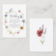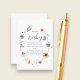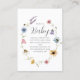 This adorable 'Books for Baby' enclosure card features a delightful watercolor illustration of a floral wreath with charming bees. The design incorporates a variety of colorful wildflowers, including soft pink blossoms, bluebells, and vibrant daisies, all gathered around the central text. The gentle plea for guests to bring a book instead of a card adds a personal and practical touch to your baby shower. This card is a beautiful way to express the love for literature and family, ensuring your baby's first library is filled with cherished stories. The design's whimsical charm and natural beauty will surely be appreciated by your guests.