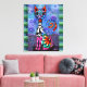 Whimsical Big-Eyed Funky Kitty Cat Abstract Canvastryck