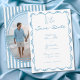 Fira din kärlek med denna fantasifulla blå handritade och handskrivna bröllopsfotografin save the date-kortdesign. Med en delikat blomsterkant och charmiga handritade bågdetaljer är den perfekt för en romantisk trädgårdsceremoni. Denna eleganta, coquette-inspirerade estetik ger en tidlös look för din unika fest. Skapad av Simply Farmhouse Press.
