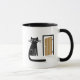Whimsical Black Cat som väntar vid dörren Mugg