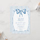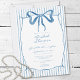 Whimsical Blue Watercolor Bow Stripe Bridal Shower Inbjudningar