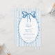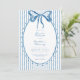 This whimsical invitation features a soft blue watercolor bow and an oval frame against a classic striped background. Perfect for a wedding with a preppy or coastal aesthetic, this charming design provides a sweet, hand-painted look for your special celebration. Created by Simply Farmhouse Press.