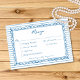 This whimsical photo wedding response card with dinner choices features a soft blue, playful scalloped rectangle frame against a classic blue and white striped background. Your first initials take center stage on the back. Perfect for a wedding with a preppy or coastal aesthetic, this charming design provides a sweet, hand-painted look for your special celebration. Created by Simply Farmhouse Press.