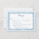 This whimsical photo wedding response card with a QR code features a soft blue, playful scalloped rectangle frame against a classic blue and white striped background. Your first initials and QR code appear on the back. Perfect for a wedding with a preppy or coastal aesthetic, this charming design provides a sweet, hand-painted look for your special celebration. Created by Simply Farmhouse Press.