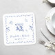 Whimsical Blue Wavy Frame Wedding Underlägg Papper Kvadrat