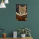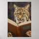 Whimsical Bobcat Reading Book Art Print - Literary Poster