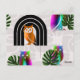 Whimsical Boho Owl & Tropical Monstera Leaf Vykort