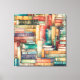 Vattenfärgseffekt hos staplar av bokar och växter som sträckts ut mot konsten av duk