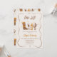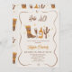 Whimsical Boots Champagne Hej 40 födelsedagsinbjudan Kimiska kvinnor födelsedag med en cowgirl boot boot, flaska, glass and cactus in Brown and orange. Den här födelsedagsinbjudan har också ett kallt ram med hjärtan och stjärnor.