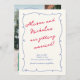 I bröllop spara datum finns en Vågigt, handritad, visuell lekfull gräns som matchar ett handskript med Ljusa färger, ett foto av ett par och ett Monogram. Den handritade vågigt gräns och det handskrivna manuset typsnitt tillför en aning spelglädje och glädje till det kommande evenemanget som säkert kommer att fånga öga från era gäster och ange tonen för en funky och roligt firande.