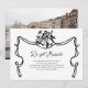 Det svarta och vita, vita och snyggt bröllop-annonskortet har ett trendig, en handritad illustration av bröllop klockor, blommor och ett band med elegant. Ditt foto går på baksidan. Det perfekt sättet att meddela vänner och familj om giftermål, efter en mikro bröllop eller ett elopement, eller efter att du gått på ett litet målbröllop.