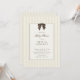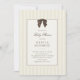 Cute whimsical hand drawn brown bow baby shower invite in a gender neutral, eggshell colored striped background.