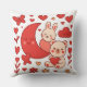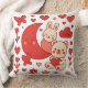 Whimsical Bunny and Bear Moon Heart Throw Pillow Kudde