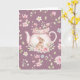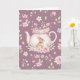 Whimsical Bunny Pink Teapot Floral Easter Kort