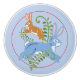 På en ljusblå bakgrund har jag kombinerat mina konstmålningar av två söta, blå kaniner och ferns och omringat dem med ett tunt rött band för ett rustiskt, återseende.. En uppfriskande men traditionell trädeskurs för ditt kök, badrum, kamper, förskola, barnrum, hantverk eller någon annan dekoration. Finns i annan bakgrund färg och med olika djur. Nyfiken originalgrafik och design av Tuzi Williams.