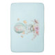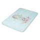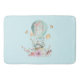 Ett badmatt med en charmerande illustration av ett litet bunnyrider längs en hett-luft-ballong som dekoreras med ett finare rosa band, tillsammans med några blommor och fjärilar. En pastellblå bakgrund ge, det är en vintagens drömmande känsla.