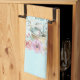 En kökshandduk med en charmerande illustration av en liten bunnyrida längs med en ballong hett-luft som dekoreras med ett band av finare rosa, tillsammans med några blommor och fjärilar. En pastellblå vattenfärgsbakgrund ge är ett drömmande vintage.