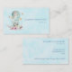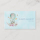 Affärskort med en charmerande illustration av en baby-bunny som rider längs en ballong hett-luft som dekoreras med ett band, blommor och fjärilar från finare.