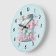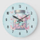 A clock with a magical image featuring pastel colored butterflies in a jar.