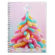 "This enchanting 3D graphic features a festive Christmas tree creatively constructed from colorful, rounded gummy or candy pieces in a vibrant pastel palette (pink, blue, yellow). The design is dusted with white 'snow' or sprinkles and topped with a delicate star. The soft, blurred background enhances the dreamy, sweet aesthetic. This design is perfect for children's holiday accessories and clothing, candy shop branding or promotions, cupcake toppers or candy wrappers, fun and whimsical greeting cards, or any product intended to be appealing, colorful, and have a sugary, festive feel."