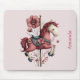 Mousepad with a cute retro style carousel horse. Drawn in Pretty pink colors with fancy flowers.